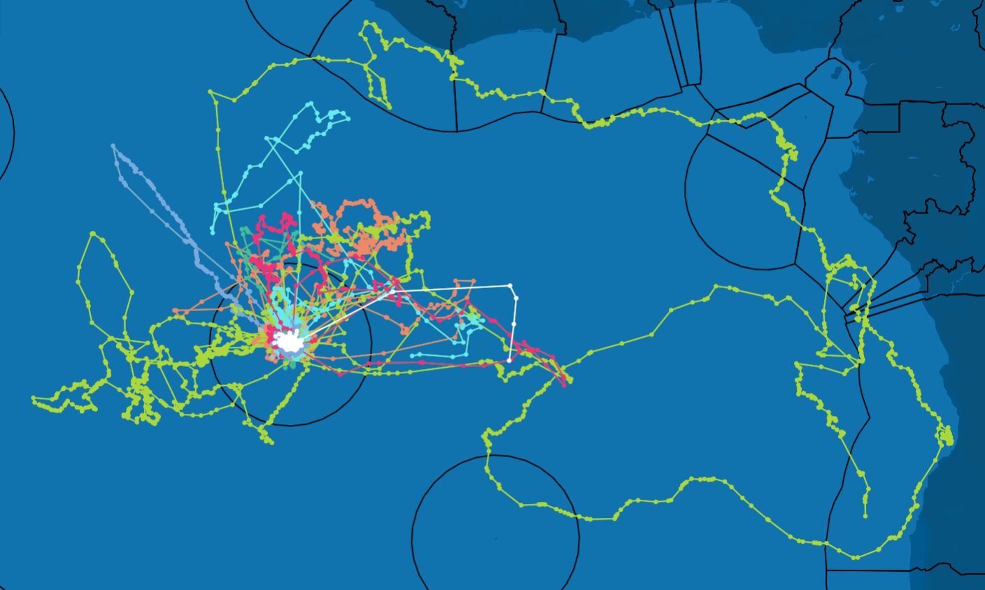 As Juvenile seabirds do not have to return to the nest to feed chicks, they generally explore further than adults. For Ascension Island’s young Masked Boobies, that means leaving the safety of the Marine Protected Area (MPA) covering the entire Exclusive Economic Zone (EEZ) where commercial fishing is not permitted. Outside the EEZ is the high seas where protection for wildlife is limited. But with the Agreement on Marine Biological Diversity of Areas beyond National Jurisdiction (High Seas Treaty) now in force, it is crucial to collect evidence of species that rely on the high seas and understand the challenges they face there.